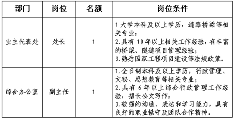根據(jù)發(fā)展需要,決定面向社會公開招聘雅安市交通建設(shè)(集團)有限責任公司(以下簡稱“雅安交建集團”)所屬子公司相關(guān)人員2名,現(xiàn)將有關(guān)事項公告如下: