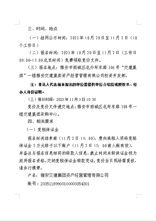雅安交建集團(tuán)資產(chǎn)經(jīng)營管理有限公司 雨名快速通道(名山服務(wù)區(qū))3號(hào)樓商鋪招租公告