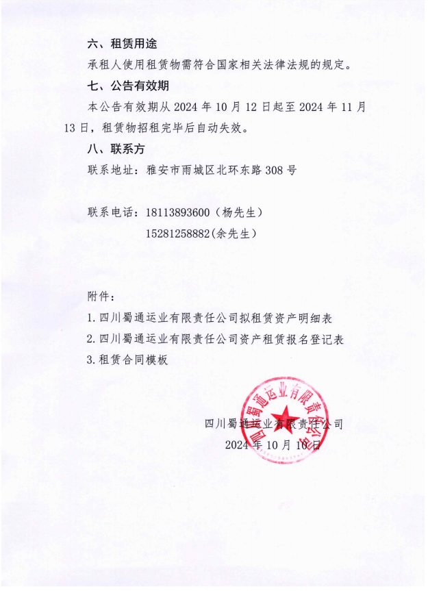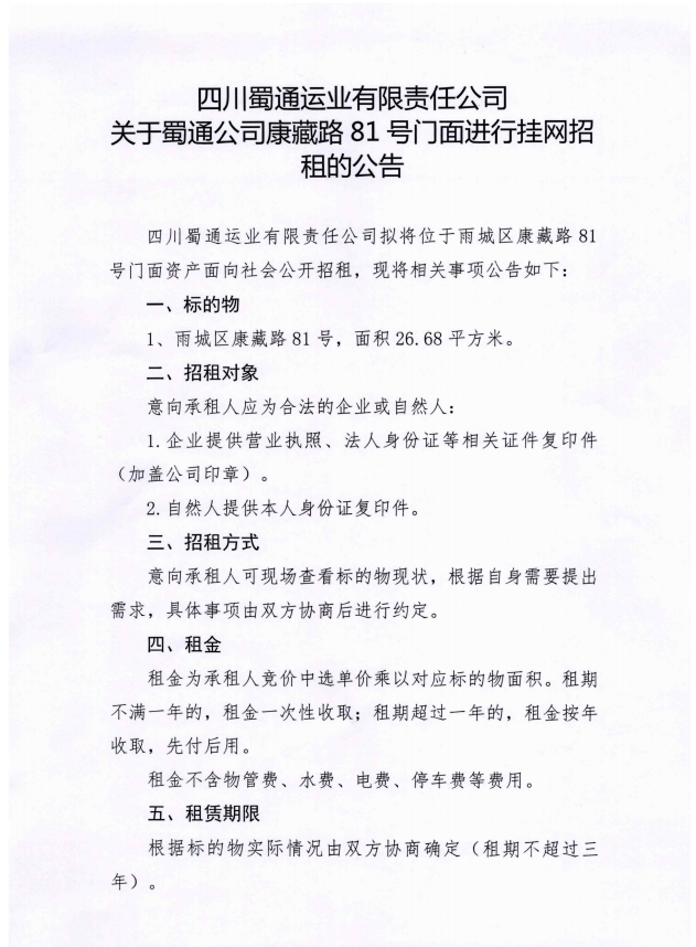 四川蜀通運業(yè)有限責(zé)任公司關(guān)于蜀通公司康藏路81號門面進行掛網(wǎng)招租的公告:附件